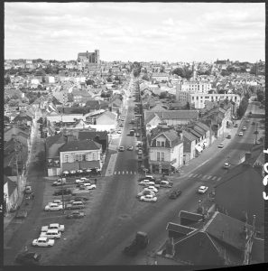 La Chasse Royale est un passage obligatoire pour rejoindre le centre-ville depuis le nord du Mans. La scène date de début juillet 1968. Le carrefour a beaucoup changé, notamment en ce qui concerne la place accordée aux voitures et celle accordée aux piétons. Ici, les rues sont larges, les trottoirs relativement étroits et les places de parking nombreuses. Le quartier était déjà muni d’une boucherie-charcuterie devant laquelle est garée une Citroën DS, et d’un bar (une pizzeria de nos jours), non loin duquel se trouve une Renault 4CV. Peu à peu, les espaces prévus pour les mobilités douces ou les transports en commun ont diminué ceux pour les voitures et la végétation a pris de plus en plus de place.