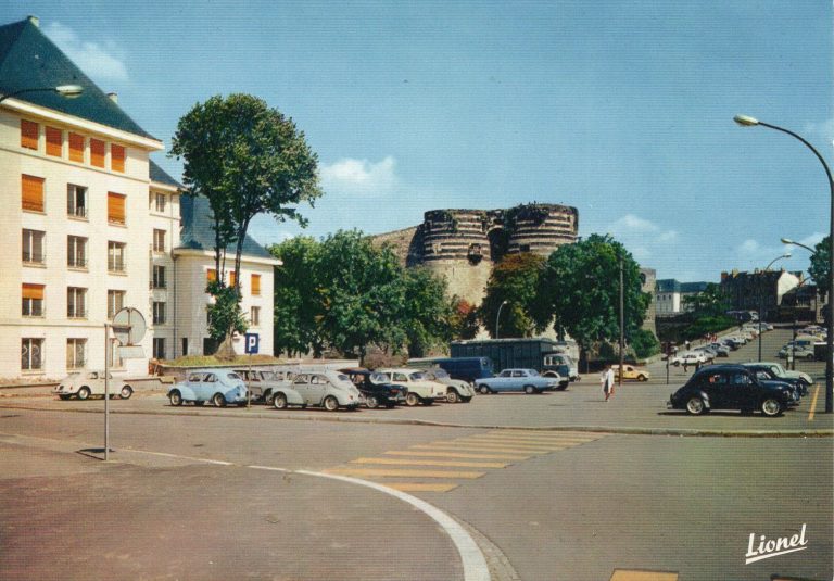 Le parc automobile représenté sur la photo laisse penser que nous sommes au milieu des années soixante. On aperçoit de nombreuses Renault 4 CV, Volkswagen Coccinelle, Citroën 2CV et Ami 6, Simca Aronde P60, une Mercedes qui pourrait être une 300 SEL et un Renault R4140, le célèbre Renault Fainéant et son moteur placé derrière la cabine. Le parking à ciel ouvert existe encore mais est appelé à disparaître à l’horizon 2028 pour laisser place à un verger.