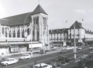 Cette photo capture une époque où la voiture régnait en maître dans le centre-ville. Une Dyane croise ici une 2CV aux pare-chocs qui semblent briller sous la lumière du soleil et un policier à vélo effectue sa ronde. Cet endroit incarne la modernité de l’époque : larges trottoirs, architecture linéaire et circulation dense, sur ce qui était encore la RN10. Taillée au XVIIIe siècle pour redessiner la route d’Espagne, élargie dans les années 1950 pour répondre au boom de l’automobile, la rue Nationale a longtemps été une artère traversante, bruyante et animée, jusqu’à ce qu’en 1973, l’A10 détourne le flot de véhicules hors de la ville. Aujourd’hui, le contraste est saisissant. Le haut de la rue a laissé place au tram et à un espace largement piétonnier. Les bancs publics ont remplacé les stationnements et au milieu de tout cela, toujours debout, l’église Saint-Julien, miraculée des bombardements de la Seconde Guerre mondiale.