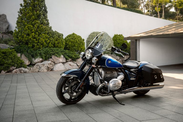 L’iconique moteur Boxer de 1802 cm³ reste au coeur de la machine. Désormais conforme à Euro 5+, il gagne en souplesse avec un couple de 163 Nm (+ 5 Nm). La roue arrière passe à 18 pouces, ce qui améliore la stabilité à haute vitesse. Optimisé, l’amortisseur arrière offre une meilleure progressivité pour plus de confort. La R 18 standard s’enrichit d’une prise USB-C, d’une nouvelle signature LED, d’une selle repensée et de jantes à 7 doubles branches, sans oublier ses garde-boues redessinés et ses fourreaux de fourche au look brut. Quant au style Blacked Out, il lui confère un caractère plus affirmé.