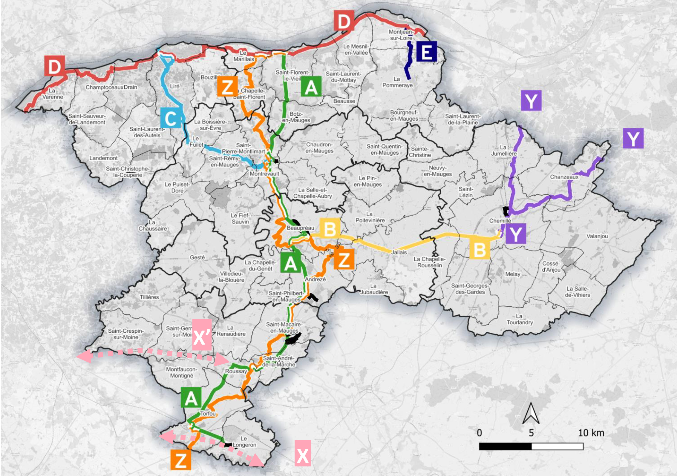 Mauges Communauté a adopté le Schéma Directeur Cyclable visant à définir le développement des voies cyclables sur le réseau sur les douze prochaines années. 238 km sont ainsi prévus, neuf itinéraires parcourant le territoire des Mauges ayant été retenus.