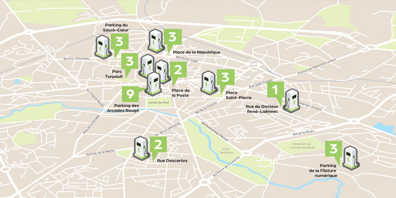 La Ville de Cholet prévoit de déployer 54 points publics de recharge autour de sites stratégiques de la ville. Afin que le service soit accessible au plus grand nombre, le tarif sera de 35 centimes par kWh. À l’horizon 2030, l’agglomération vise l’installation de 250 points de recharge. Pour en bénéficier, il suffit de s’inscrire sur le site Ouest Charge ouestcharge.fr. Une application mobile permet de localiser les bornes en temps réel.