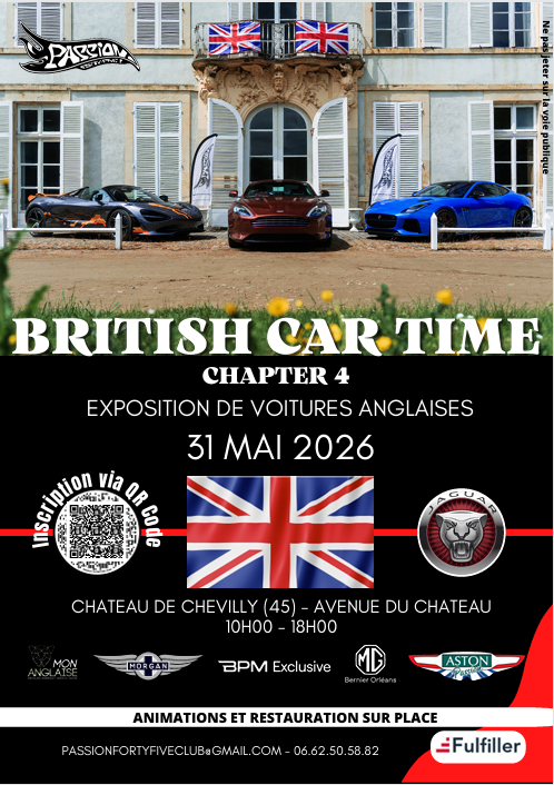 Avis à tous les passionnés d’automobiles britanniques : ne manquez pas la 4e édition du British Car Time, le 31 mai prochain (10h-18h) au Château de Chevilly. Organisée par le Club Passion Forty five, cette journée conviviale sera dédiée aux voitures anglaises et à la culture britannique dans une ambiance conviviale. Au programme : animations, visite du château et des food trucks pour ravir les papilles !