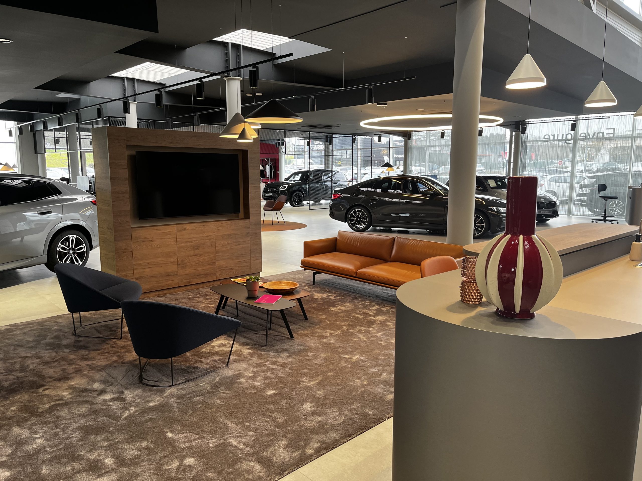 définitivement être entrée dans une nouvelle ère. « Envergure BMW & MINI Angers est la troisième concession du groupe à profiter de ce nouveau concept. Il a pour principale ambition de faire que le client se sente comme à la maison. Il peut s’installer tranquillement dans un espace chaleureux, se poser dans un univers où le mobilier pourrait être le sien, profiter du bar, se détendre, discuter avec le vendeur dans une ambiance pas oppressante contrairement à celle d’un bureau. Tout y est moins formel, plus accueillant, plus vivant. Ce concept va de pair avec la volonté de la marque de s’ouvrir au plus grand nombre. BMW a certes un côté premium, mais l’idée est aussi d’accueillir de nouveaux publics, de parler au plus grand monde possible tout en gardant la fidélité et la passion que la marque génère. Cela se matérialise aussi dans notre gamme, dont les loyers sont plus accessibles ».