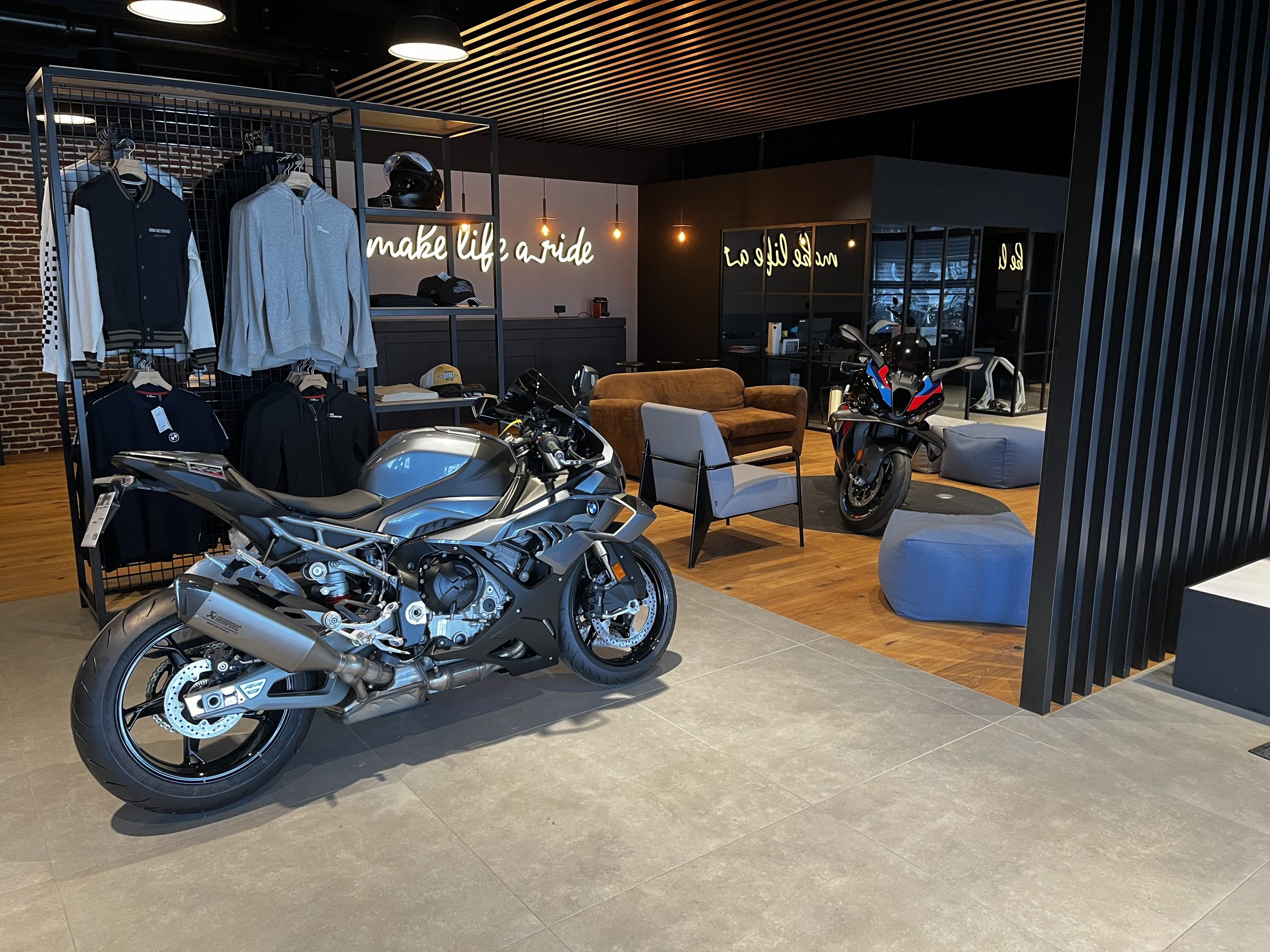 déménage et rejoint la concession automobile, face à l’espace dédié à l’occasion, pour constituer un véritable pôle dédié à la marque allemande. Elle profite de ce nouvel espace pour changer. « La concession moto adopte les mêmes codes et la volonté d’accueillir dans une ambiance où l’on se sent bien. L’atelier, repensé, bénéficie maintenant d’une surface rare dans le milieu, le showroom est plus chaleureux et on dispose désormais d’un véritable espace dédié à l’occasion et parfaitement identifié. Le parcours client est plus clair et plus naturel. On s’oriente comme chez soi. Le but du jeu est aussi de créer un univers ayant quelques bases communes, de créer des synergies entre ces deux univers et surtout de miser sur un véritable accueil afin de partager pleinement une passion commune avec nos clients ». Une nouvelle approche partagée par les deux branches de la marque et qui vise donc à ouvrir davantage l’univers de BMW et MINI et « transformer cette concession en véritable lieu de vie ».