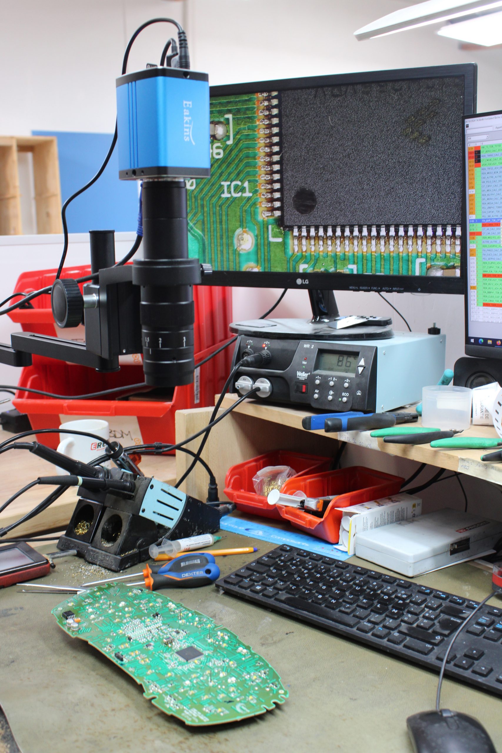 ans, disposons d’un important réseau pour trouver des pièces et pouvons même fabriquer certains éléments introuvables. Notre force est de pouvoir répondre à un grand nombre de problèmes ». Le parcours du client est simplifié et l’intervention est rapide. « Tout passe par notre site internet. Le client peut rechercher par immatriculation afin d’obtenir un descriptif de toutes les pièces et de tous les types de pannes pouvant survenir grâce à la base de données que nous avons développée. Cela permet d’identifier la panne, d’établir un premier diagnostic et d’estimer le coût de la réparation. Il peut aussi passer par notre service de devis en ligne. Il dépose des photos de la pièce, sa référence, décrit le problème pour obtenir une réponse de notre pôle étude. Une fois ces étapes passées, le client envoie ou dépose la pièce, la réparation est effectuée en 24-48h pour tout ce qui est au catalogue puis réexpédiée ou peut être retirée sur site ». Expertise et efficacité, telle est la recette qui fait d’Érépar le premier réflexe en cas de souci électronique.