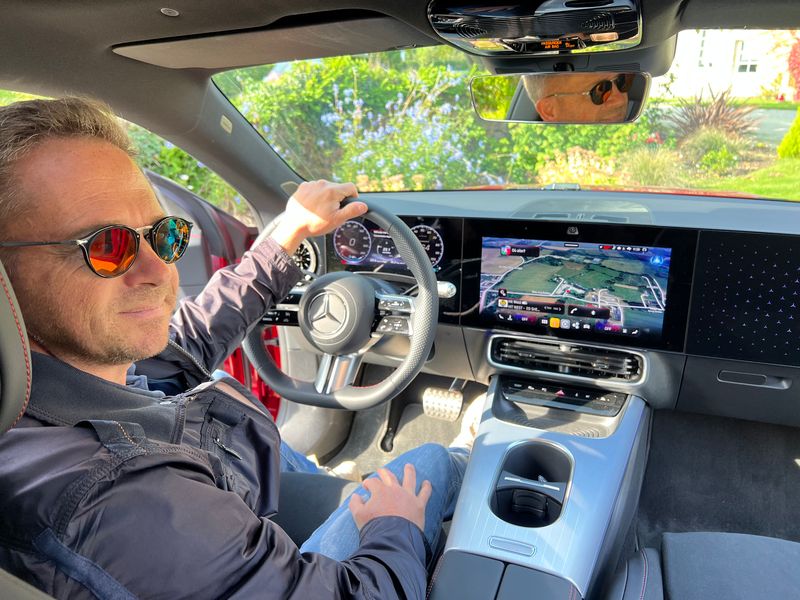 « Dans cet écrin épuré et raffiné, la qualité de fabrication est de série : pont central flottant, toit panoramique, sellerie sport, ambiance lumineuse, écran inédit panoramique MBUX Superscreen, l’habitacle est habilement pensé, de sorte qu’on ait du confort et un bel espace à disposition. On note également une insonorisation qui n’est pas excessive et de fait ultra appréciable pour l’utilisateur ».