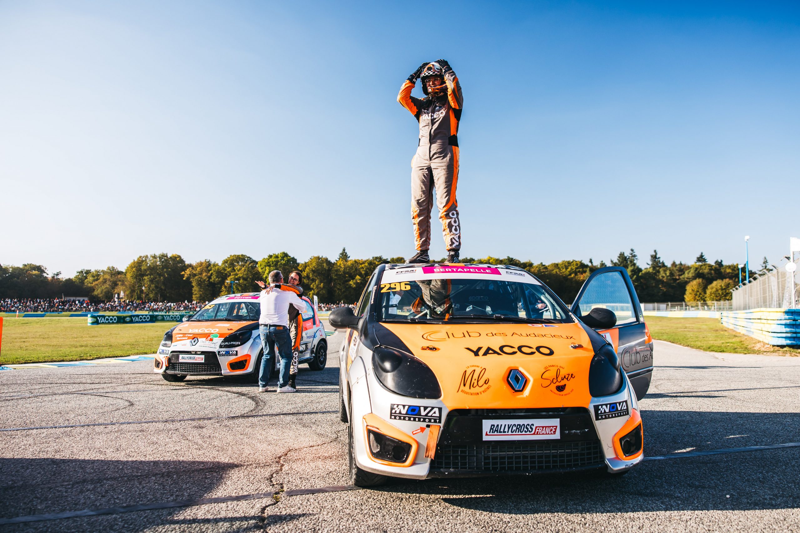 « Sans passer par le karting, je me suis lancée en 208 Racing Cup. En 2018, mon conjoint est champion de France en sprint, ensemble, nous sommes vice-champions en relais ». Ilona stoppe alors un temps. « Je me suis aperçue à quel point il était difficile pour une femme d’évoluer dans ce milieu, mais très vite, l’étincelle se rallume. En 2022, j’ai eu envie de reprendre. L’année suivante, je suis championne de France TCA Light ». Brûle alors un nouveau feu. « Avec ce titre sur piste, j’avais la sensation d’avoir clôturé un cycle. Lors d’un week-end à Lohéac, je décide de me lancer dans le rallycross ». Là encore, Ilona ne perd pas de temps. Une première saison avec la Team Eleven Motorsport pour prendre ses marques puis, en 2025, le titre de championne de France. Dans sa roue, Ilona entraîne une autre dynamique.