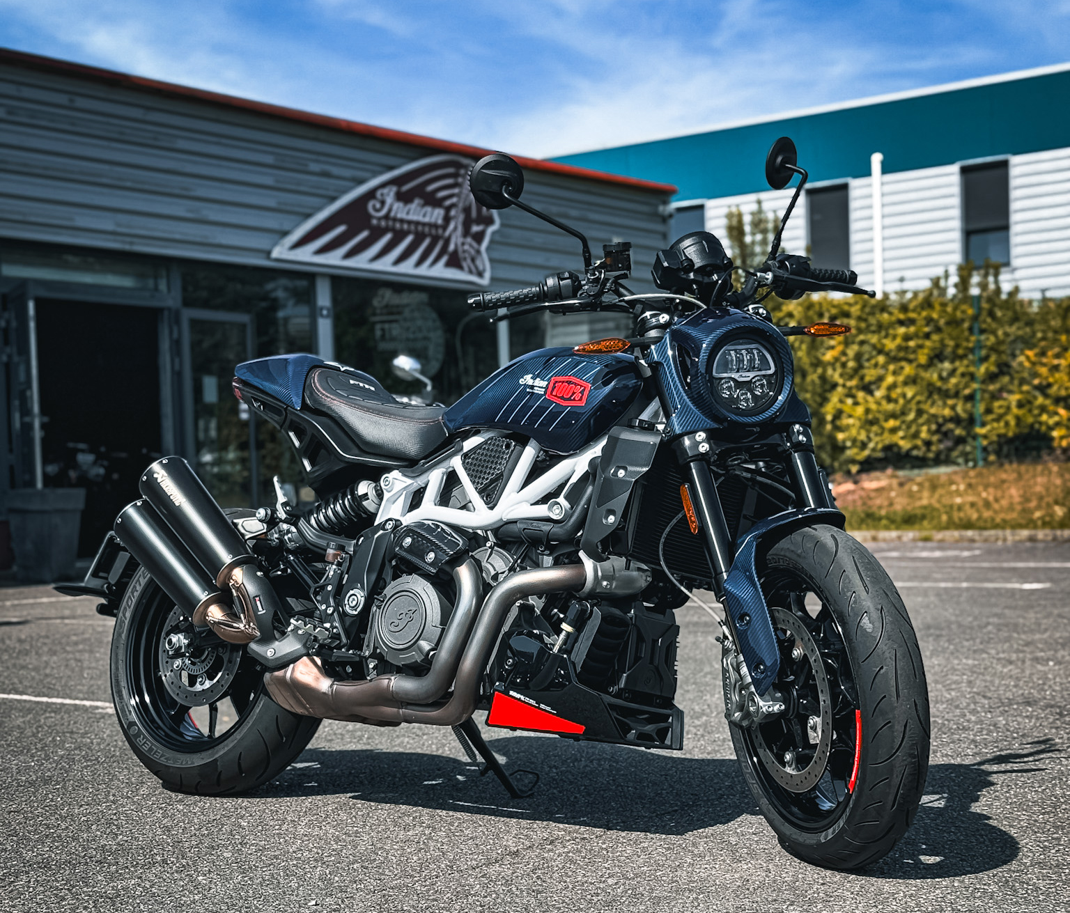 La concession Indian Motorcycle Rennes a accueilli une véritable perle rare : une FTR X 100%. Série limitée ornée des logos Indian Motorcycle et 100%, le roadster s’offre un habillage en fibre de carbone et se dote d’un V-Twin de 123 ch avec un couple de 118 nM. La belle a été produite à seulement 400 exemplaires, une rareté.