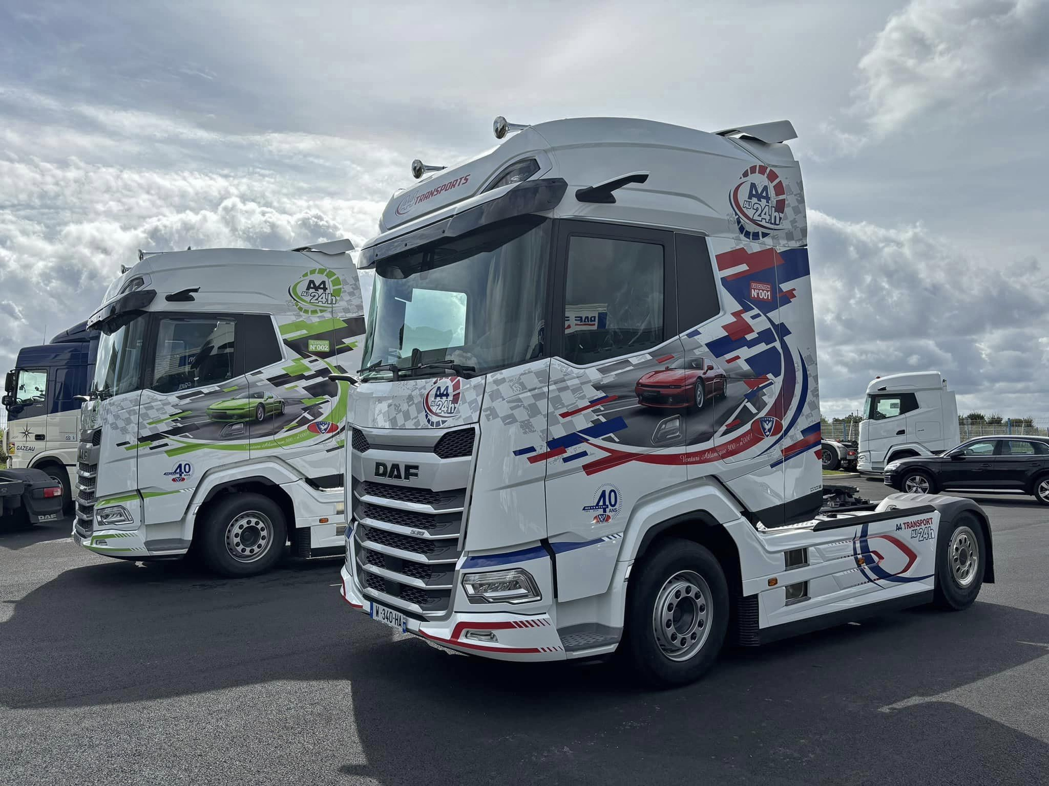 Lors des 24 Heures camions qui se sont tenus fin septembre, Daf Trucks France a fait défiler plusieurs véhicules dont ceux préparés par les établissements Petit basés à Angers pour leur client A4 Transports. Afin de célébrer le 40ème anniversaire de Venturi, les deux Daf XG+ 530 étaient ainsi décorés en hommage à la marque longtemps installée à Cholet.