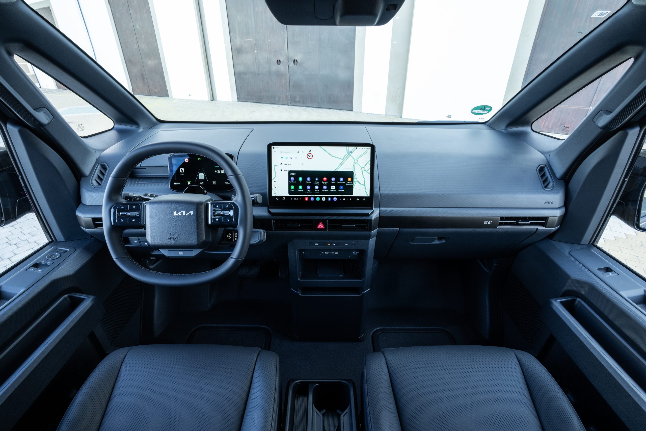 Accès facilité, seuil de chargement bas, aménagements modulaires : le PV5 Cargo se concentre sur l’ergonomie réelle. L’habitacle privilégie la durabilité, la logique de commandes et la connectivité métier. Kia parle ici productivité, réduction des temps morts et confort sur de longues journées. Une approche pragmatique, presque clinique.