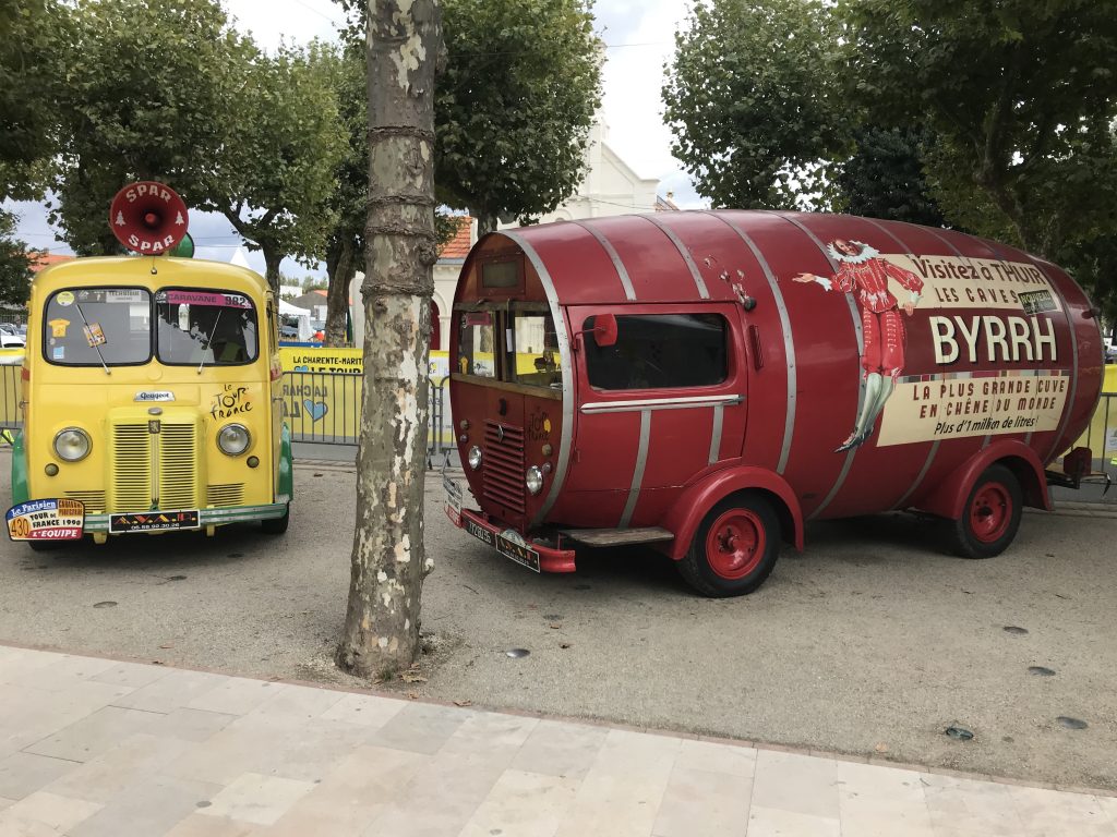 Il y a un peu plus de 30 ans ,sur le tableau de bord du véhicule de Lionel Blanleil trônait une miniature du tonneau de la marque d’alcool Byrrh. « Un jour, dans une casse, une personne qu’il croise lui dit qu’il sait où se trouve le vrai véhicule », raconte son fils Enzo. Une fois rendu sur place, à Laillé, ce passionné d’automobile découvre dans un champ ce camion spécialement modifié pour la caravane de la célèbre épreuve cycliste. « Après le Tour de France, il avait servi à effectuer des livraisons pour la marque. On pense qu’il est tombé en panne dans le secteur, a été récupéré par un agriculteur puis transformé en abri. Il y avait même un poêle à bois à l’intérieur », poursuit Enzo Blanleil. Va alors débuter une restauration d’un peu plus de deux années avec le concours d’une dizaine d’amoureux de véhicules anciens. Ce sera aussi le début d’une incroyable collection. « Au fil des années, d’autres véhicules de la caravane ont été achetés et retapés : deux Renault Super 5 superposées pour faire la promotion d’une marque de glue, des bouteilles Butagaz, le camion Spar, des véhicules de direction de course… ».