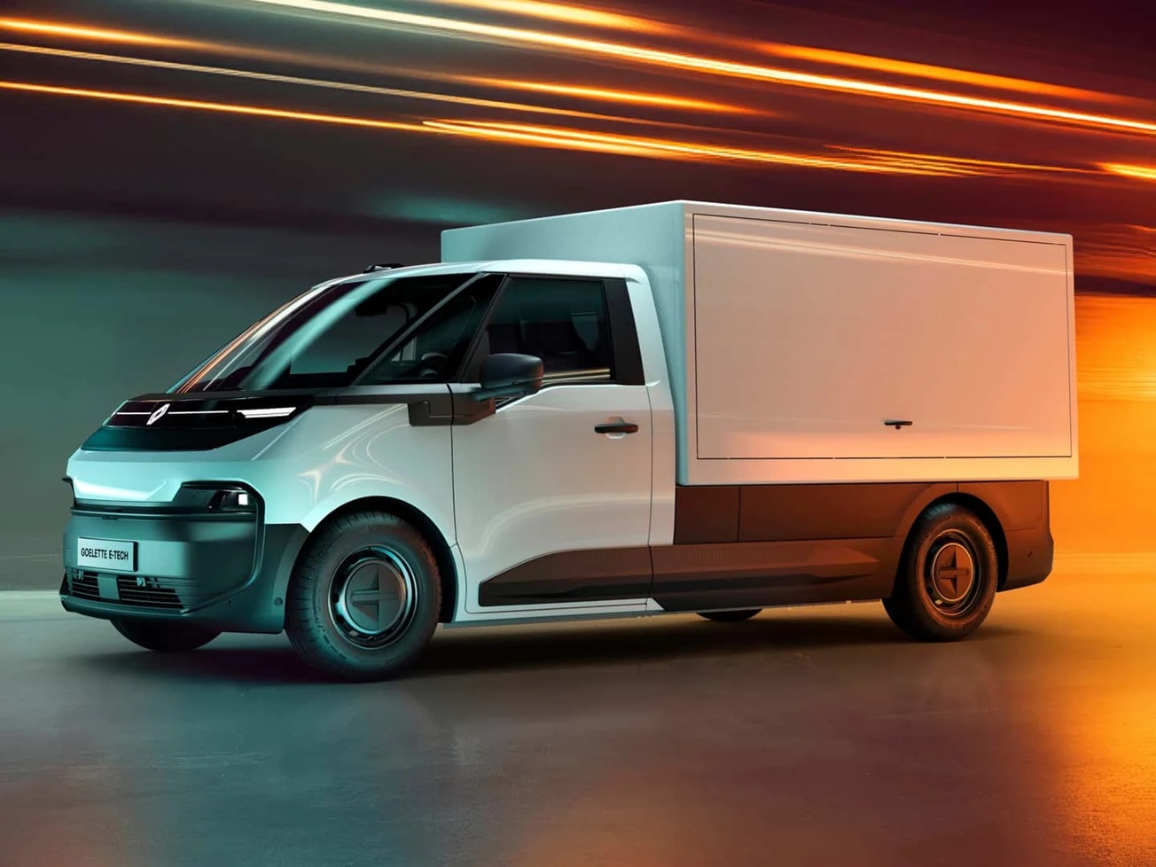 La Goelette marque le retour d’un utilitaire emblématique en version 100 % électrique. Développée avec Flexis sur une plateforme innovante skateboard, la nouvelle Renault Goelette E-Tech sera produite à Sandouville (France). Polyvalente, robuste, modulable et connectée, elle se décline en châssis cabine, box ou benne, offrant une base idéale pour de nombreuses transformations professionnelles.