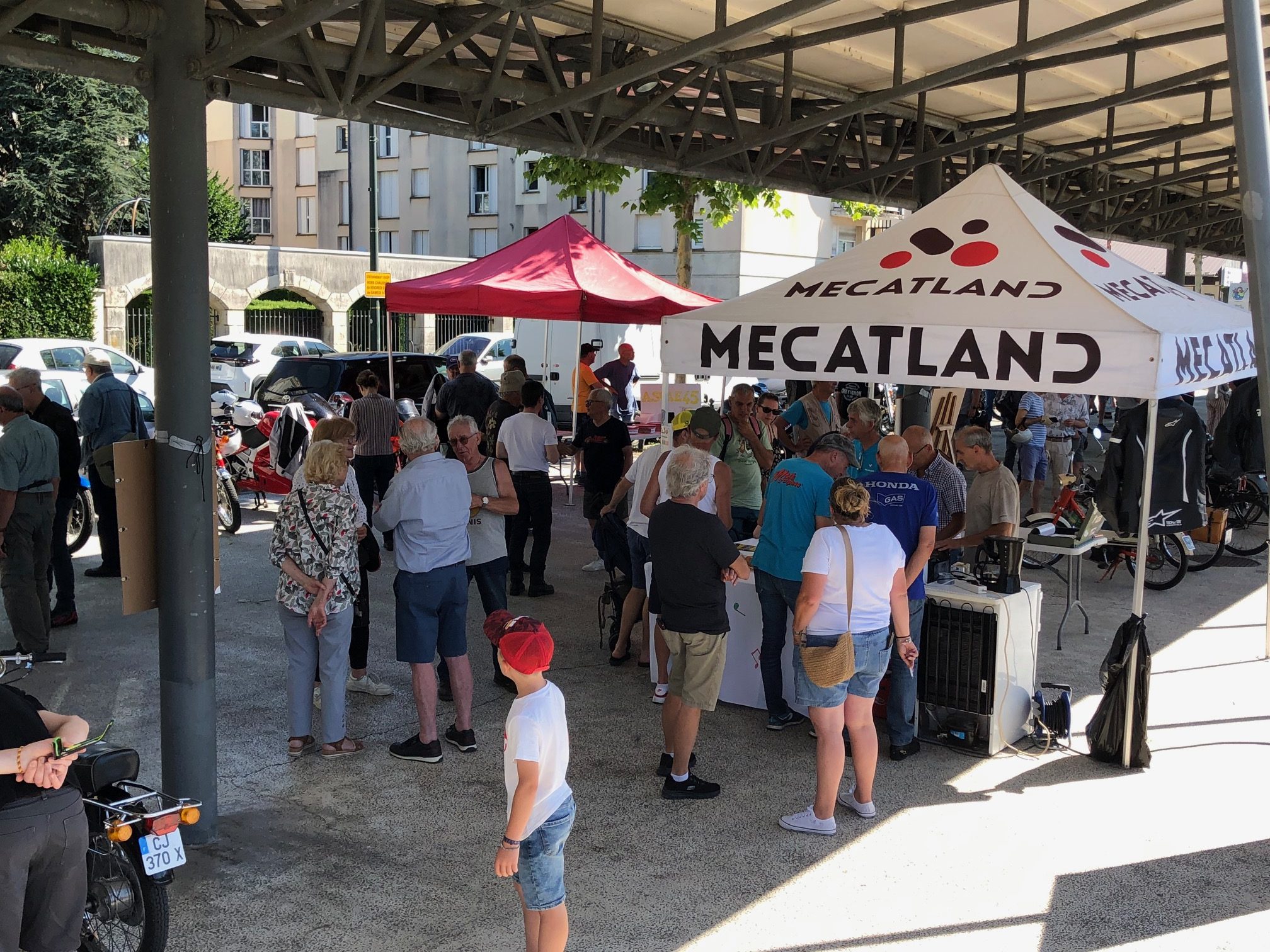 sympathisants, unis par un même moteur : promouvoir, dans une ambiance conviviale, leur passion de la moto et de la mob’. Rien de tel qu’une passion commune pour faire valser les barrières sociales. Chez Mecatland, association reconnue d’intérêt général, la moto et la mob’ sont sources de discussions inépuisables mais aussi de regroupements conviviaux, le 5ème dimanche du mois sur le quai du Roi à Orléans, de 10h à 13h. 80 propriétaires en moyenne viennent présenter leurs modèles d’avant les années 2000 et tailler la bavette avec d’autres passionnés et curieux de passage. Pas de chichis, pas de lézards. « On est vraiment dans une démarche associative. On fonctionne sans prise de chou et sans ego. Vous n’êtes pas obligés de posséder telle marque ou tel modèle. Nous sommes un club multi-facettes, multigénérationnel et multi activités », insiste Bernard Joseph, président de Mecatland.
