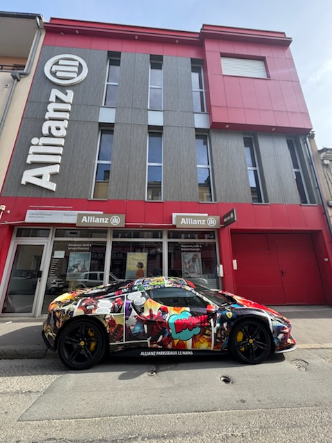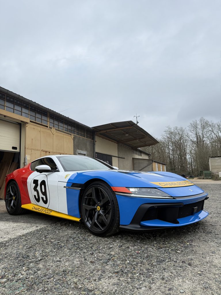 LOCODECO Pour sortir du lot, passez par Locodeco ! Vincent a récemment goûté aux plaisirs italiens avec plusieurs projets de covering originaux. Tout démarre par une commande de Charles Pozzi Paris lui demandant de réaliser un covering sur la dernière Ferrari à moteur V12, la 12Cilindri. Mais pas n’importe quelle livrée, une bleue, blanche et rouge rendant hommage à la Ferrari 365 GTB Daytona qui a fait la gloire de la marque sur circuit. Ce projet lui a demandé 40 heures de travail et sillonna la France pendant la dernière édition du Tour Auto, lui conférant une visibilité nationale et ravissant les spectateurs.