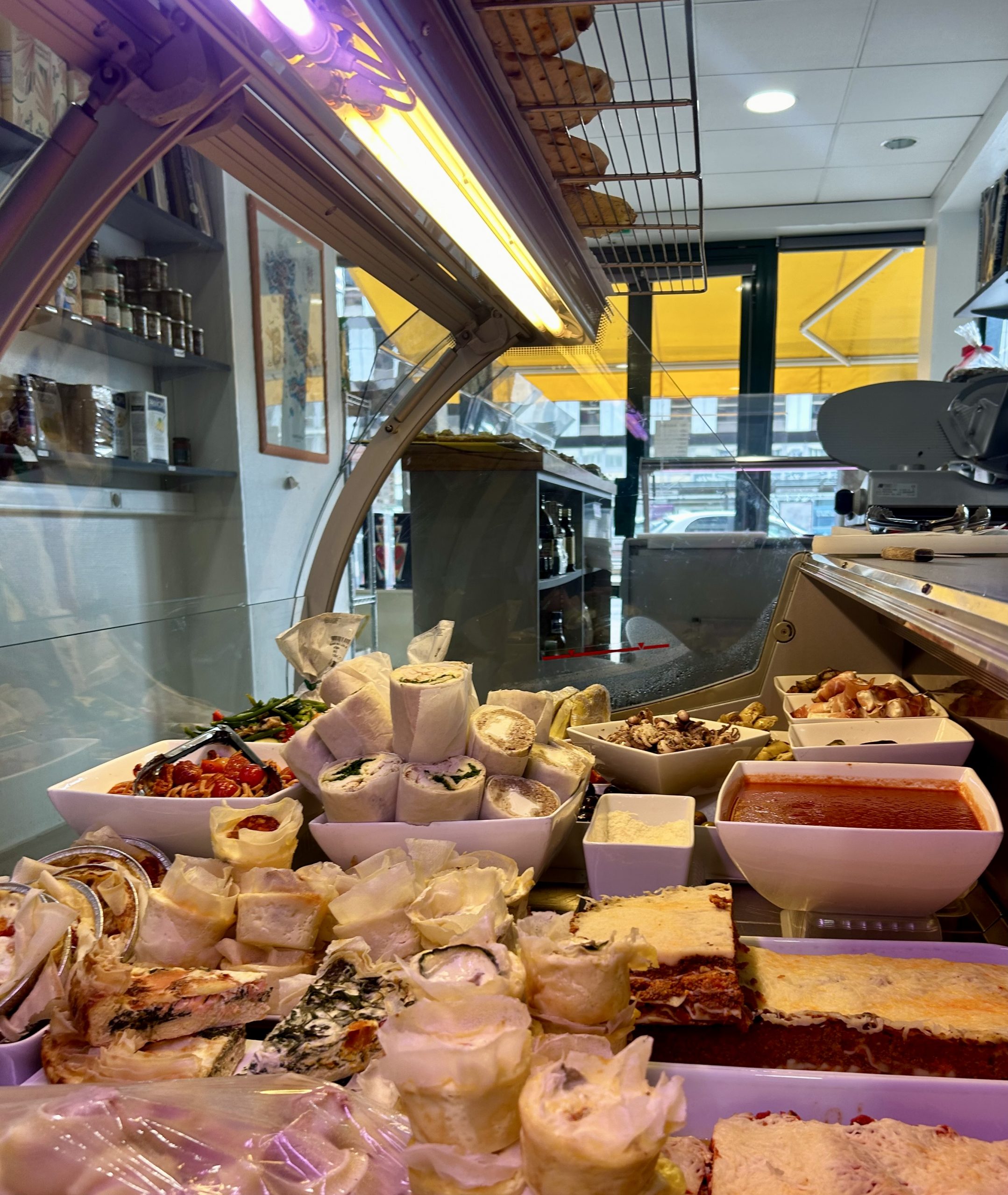Dès le premier pas dans la boutique, l’Italie vous ouvre ses portes. Plusieurs thèmes sont proposés, des produits d’épicerie fine purement italiens sur le côté droit font face à trois vitrines chacune proposant des mets différents. La première fait se côtoyer charcuteries et fromages italiens, les deux autres mettent en avant des mets concoctés dans la cuisine de l’arrière-boutique dont la majeure partie est vendue au poids, parts de pizza comprises. Installée depuis 10 ans, l’épicerie dispense ses services pour les clients curieux de découvrir ce terroir sans oublier l’offre de traiteur pour profiter d’un voyage gustatif avec des convives.