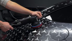 haute précision, visant à corriger les défauts, protéger les surfaces et valoriser l’esthétique, tout en respectant les matériaux. « Selon l’état du véhicule, l’intervention peut aller d’un simple retrait de micro-rayures à plusieurs jours de travail sur une voiture ancienne », explique Franck. Avant la pose d’un film PPF, les véhicules bénéficient d’une préparation minutieuse : décontamination, polissage et inspection. Cette exigence fait partie de la collaboration avec Le Mans Auto Racing, spécialiste reconnu de la pose de PPF. Ensemble, ils offrent une finition rare où protection et esthétique se conjuguent parfaitement.