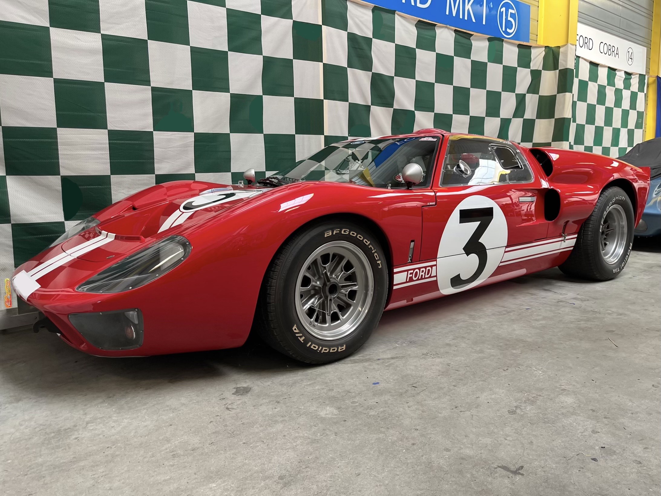 Sur le thème de la rivalité entre Ford et Ferrari, le film Le Mans 66 retrace le développement de la Ford GT40, à jamais la première voiture américaine victorieuse de la classique mancelle. Le propriétaire est intarissable sur l’histoire de ses voitures, et celle-ci n’y fait pas exception. La GT40 est un mythe sur quatre roues comptant de très nombreuses anecdotes. « À l’origine, il s’agit d’une voiture anglaise, la Lola Mk6 GT, dont Ford a racheté les plans pour en développer une plus rapide encore. Comme le montre le film, ils ont progressivement amélioré la voiture en augmentant la taille et la puissance du moteur, passant du 5 litres au 7 litres. L’efficacité aérodynamique et le refroidissement ont été fortement travaillés entre la MkI et la MkII comme on le voit sur la partie arrière avec toutes ses entrées d’air ».